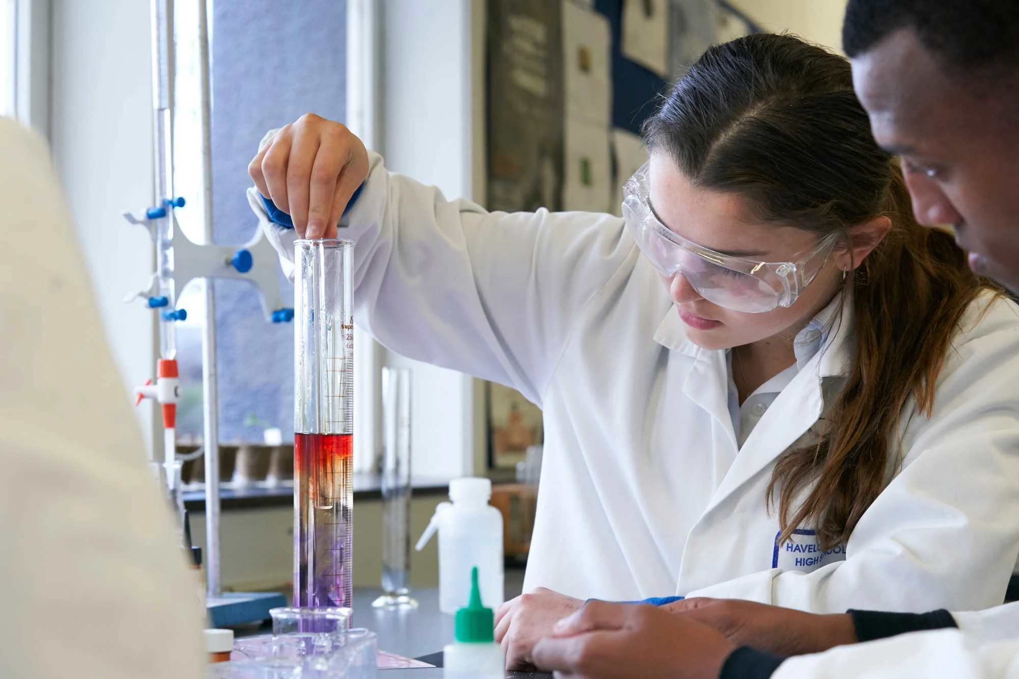 Schoolgirl-carrying-out-chemistry-experiment
