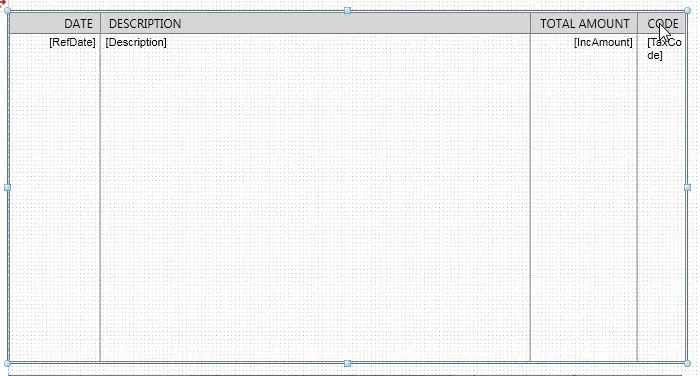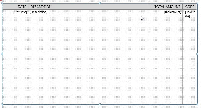 Tables in forms contain transaction information such as line items or tax summary information. Different table options are available for each form type.