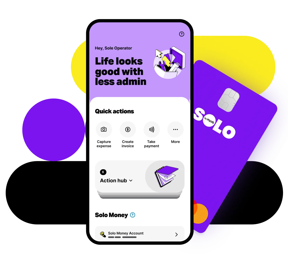 Here’s where your sidekick, Solo by MYOB, comes in. Get all your admin sorted in one place, so you don’t have to do the run around while running your business.