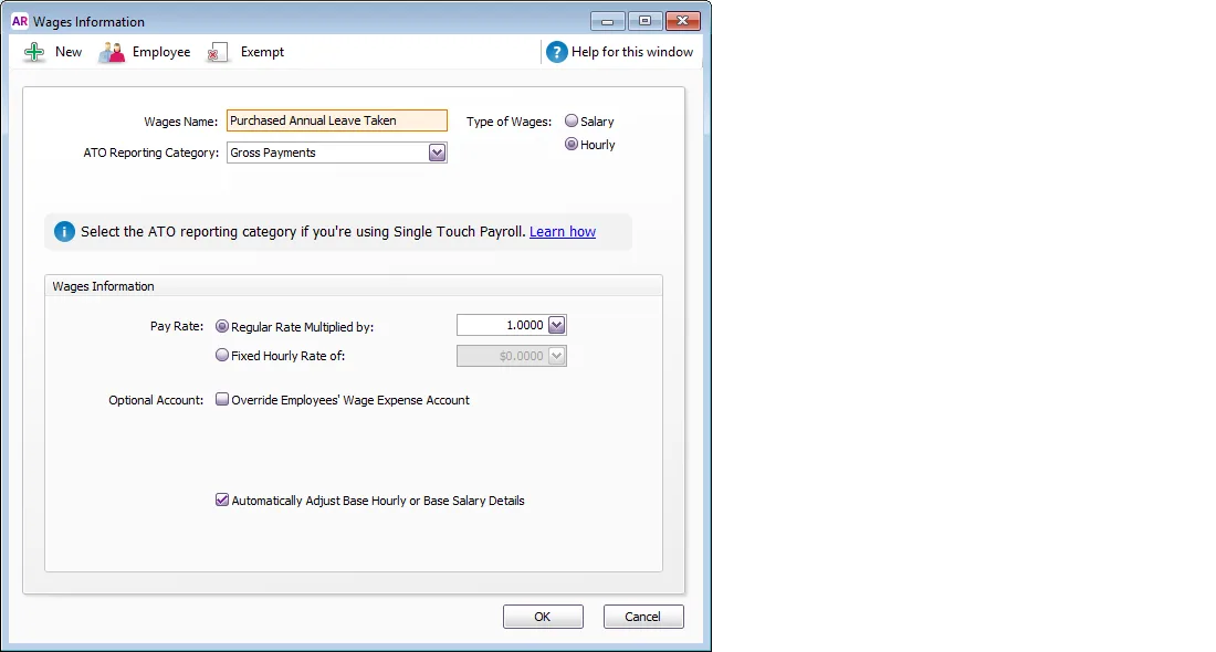 a wage category – you'll use this to pay the purchased annual leave when it's taken