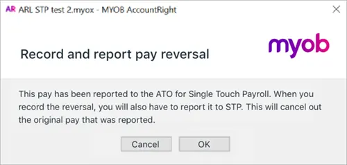 If the pay being reversed is a cheque or electronic payment, a message will be displayed advising it will be recorded as cash. Click Yes to proceed.