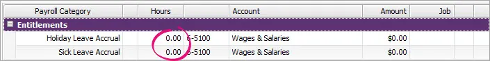 If leave should NOT accrue on this payment, enter 0.00 in the Hours column for the entitlements.