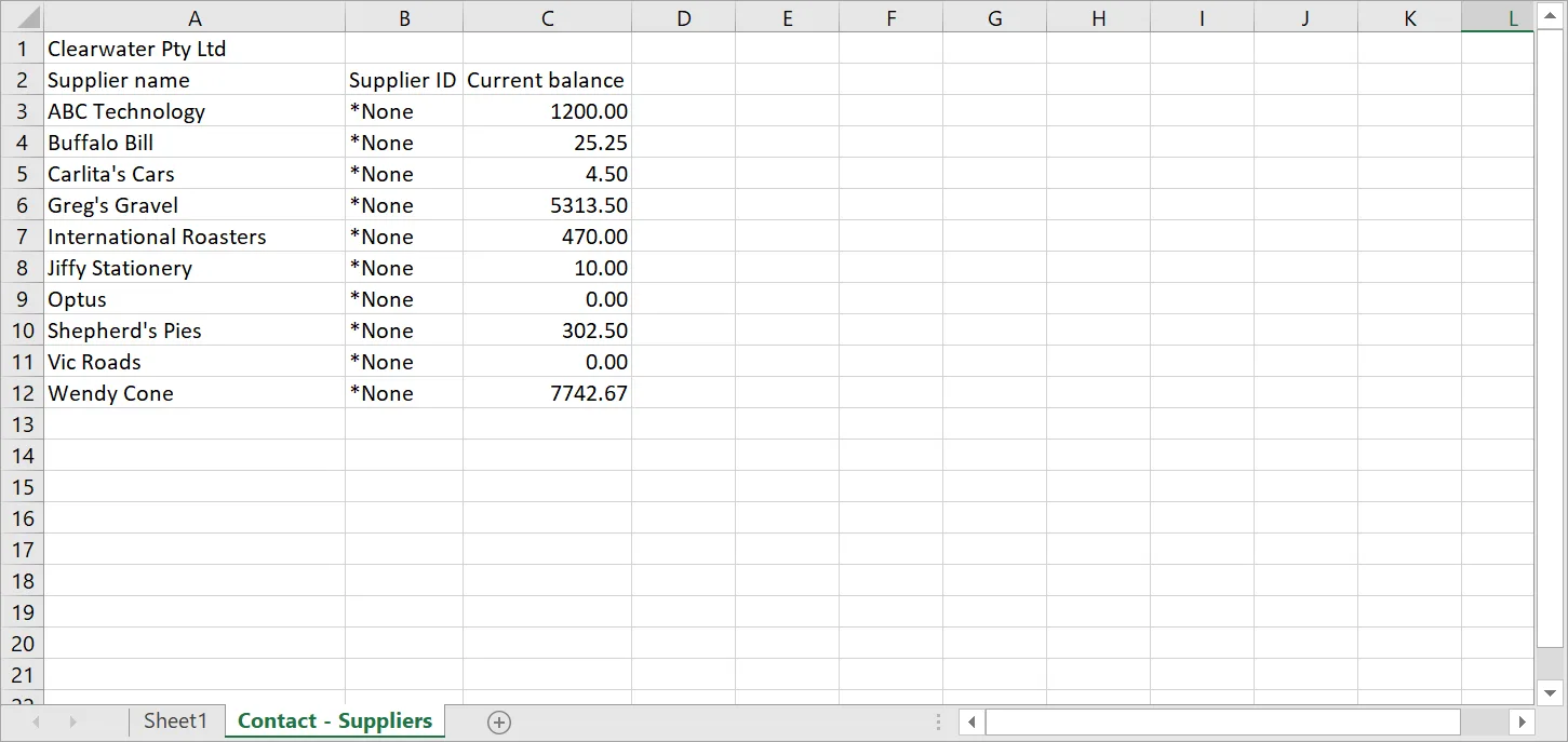For example, if you'd like a list of all of your suppliers and their current balance, go to Contacts > Suppliers > and select Current balance.