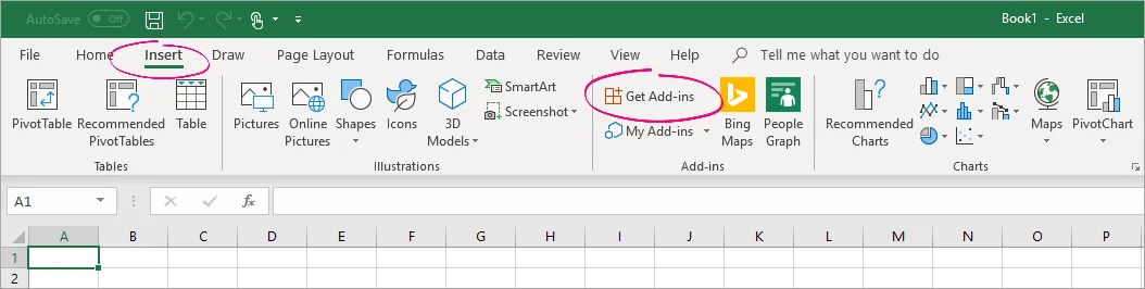Click the Insert tab, then click Get Add-ins. The Office Add-ins page will appear.